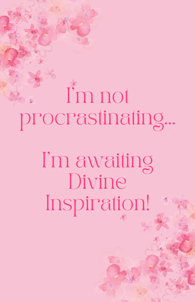 This 160 page coil bound, lined notebook has a message that gets you off the hook…you’re not procrastinating, you are awaiting Divine Inspiration! The pages on the inside have shadows of the floral cover pattern.
